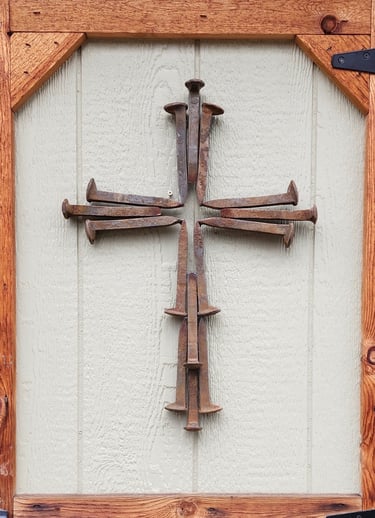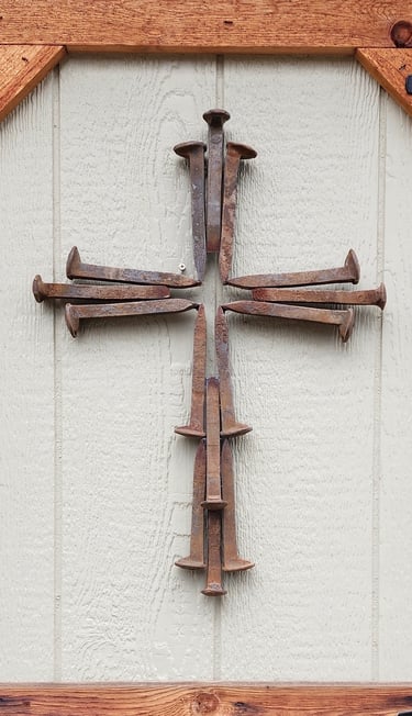 Add a touch of rustic charm to your barn or garden shed with our old rugged cross. Each cross is meticulously crafted using 15 vintage railroad spikes. The welds are cleverly concealed on the back, maintaining the spikes vintage appearance on the front.