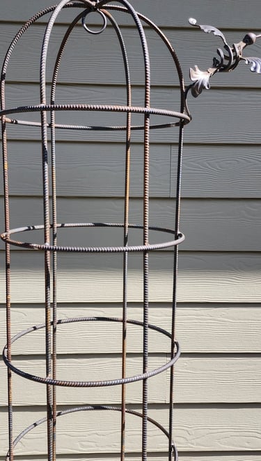 Also available is a whimsical bird. Add ambiance in your yard or garden with our sturdy steel birds. These charming creatures can be strategically placed in a shrub, seemingly flying out of a flower bed, or nestled among the greens in your garden. They also make the perfect addition to any peony cage or obelisk, adding a unique and eye-catching element to your outdoor space.